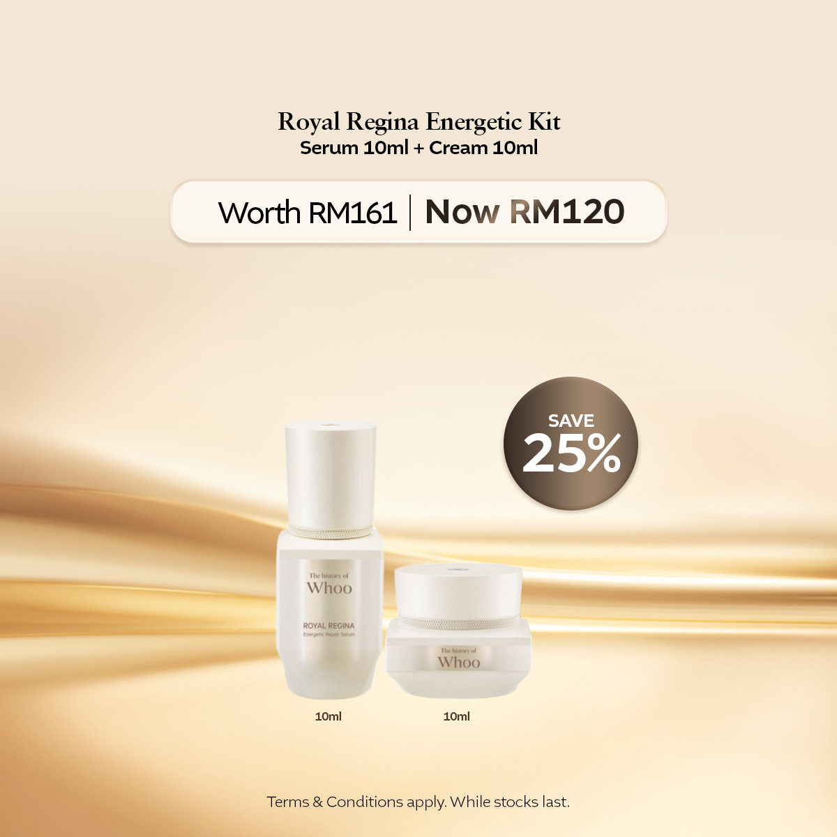 Energy Serum with a sensuous texture, containing the vitality of the exquisite Royal Iris Absolute™ completed after a long wait and the efficacy of Royal Amino Repair™, the Whoo unique ingredient, gives firm and energy-filled skin and smooth, flowing, balanced skin rhythm.
